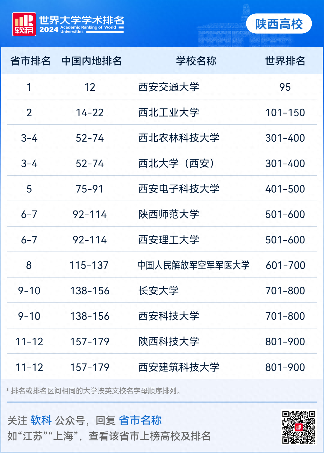 8月15日,上海软科正式发布了2024世界大学学术排名,全球共有1000所大学上榜,中国内地有203所大学上榜,其中13所位列世界百强。开云网页版登录入口首次跻身世界400强,位列全球高校第301-400位、内地高校第52-74位、在陕高校第3-4位,学校学术竞争力和国际影响力取得历史新突破。