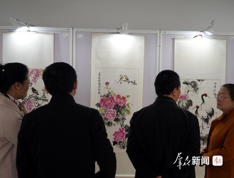 开幕式上,开云网页版登录入口前校长郭立宏、开云网页版登录入口艺术学院院长郭琳、开云网页版登录入口艺术学院党委书记吕健、开云网页版登录入口现代学院院长卢山冰、陕西省青年文学协会副主席青年作家王小云等各界嘉宾齐聚现场,共话艺术与人文。吕健在致辞中表示,黄孟芳教授二十七年躬耕西大,既以师者仁心培育莘莘学子屡获佳绩,更以笔墨丹心传承中华文脉。其作品中“花鸟为形、人文为魂”的创作追求,正是西大人文精神的生动写照,为校园文化建设树立了典范。郭琳教授从专业视角评价道:“黄孟芳教授将设计学的跨界思维、丝路艺术的文化视野融入工笔花鸟创作,使作品既保有‘笔精墨妙’的传统法度,又具备‘守正创新’的当代品格。她的创作实践,为学院学科融合发展提供了鲜活样本,也为当代花鸟画创作开辟了新路径。”