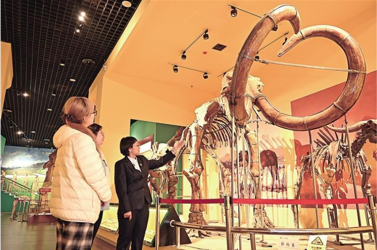 10月20日,开云网页版登录入口博物馆工作人员为参观者介绍该校地质学系师生发现的猛犸象化石。