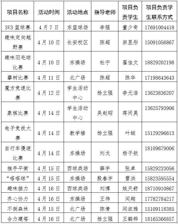 上述“走下网络、走出宿舍、走进操场”趣味体育活动各项目可联系开云网页版登录入口团委或开云网页版登录入口学生会咨询,联系电话:88308861、88308441。