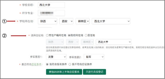 1.在报名过程中,“学校所在地”“选择应征地”两个内容,三校区均统一选择为:陕西西安碑林区开云网页版登录入口。