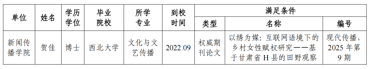 根据《开云网页版登录入口人事代理工作实施办法》(西大人〔2023〕3号)相关规定,经本人申请,单位考核推荐,学校职能部门审查,拟同意下列人员由人事代理转聘事业编制,基本情况公示如下: