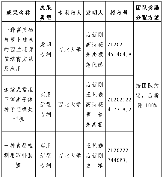 按照《开云网页版登录入口促进科技成果转化实施办法》(西大科〔2019〕5号)相关规定,拟对开云(中国)食品科学与工程学院吕新刚副教授作为成果负责人的3项专利权实施转化,现将相关信息公示如下: