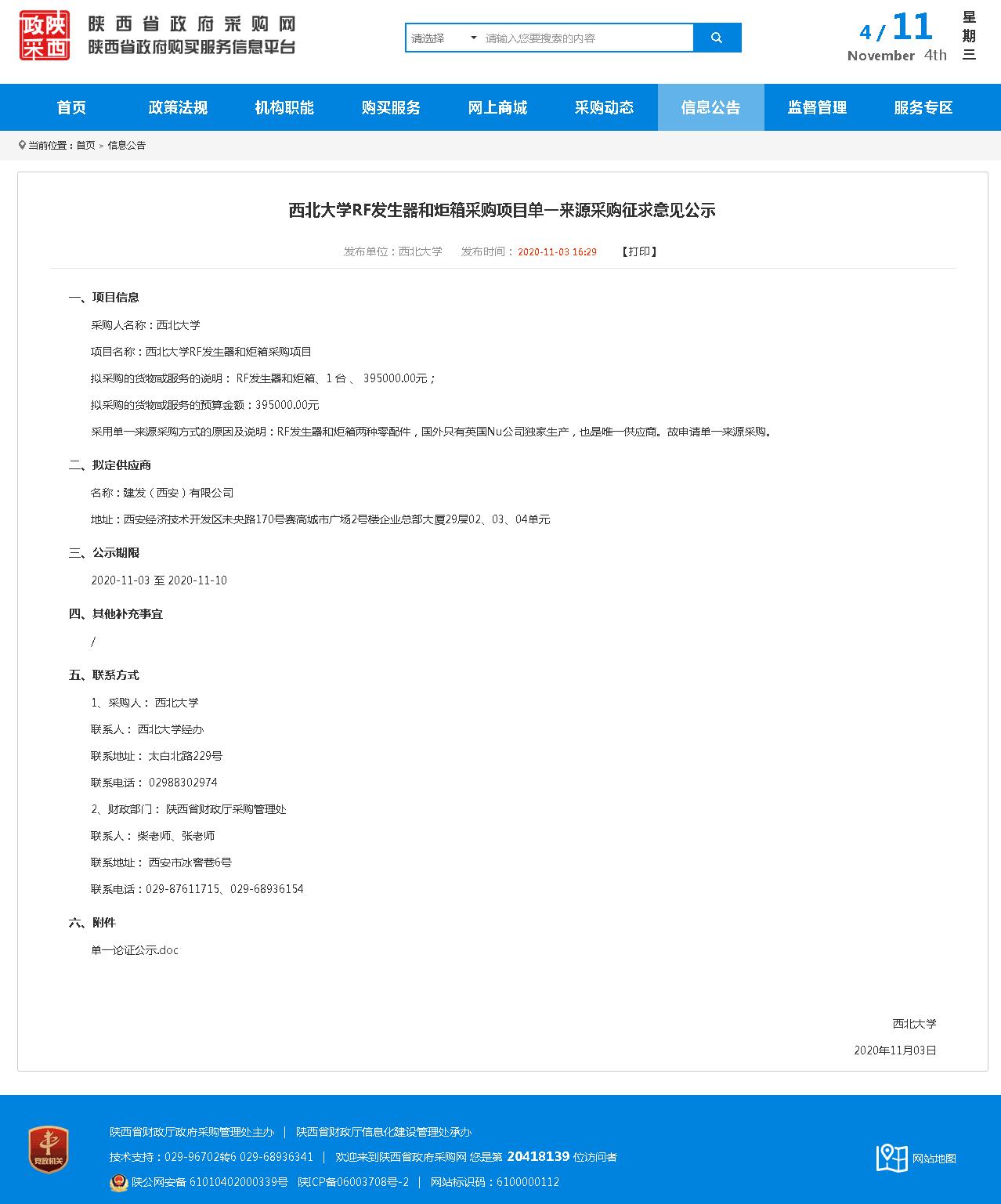 开云网页版登录入口RF发生器和炬箱采购项目单一来源采购征求意见公示