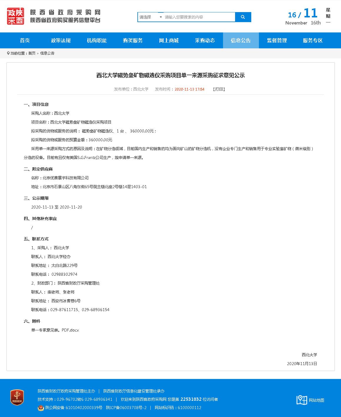 开云网页版登录入口磁势垒矿物磁选仪采购项目单一来源采购征求意见公示
