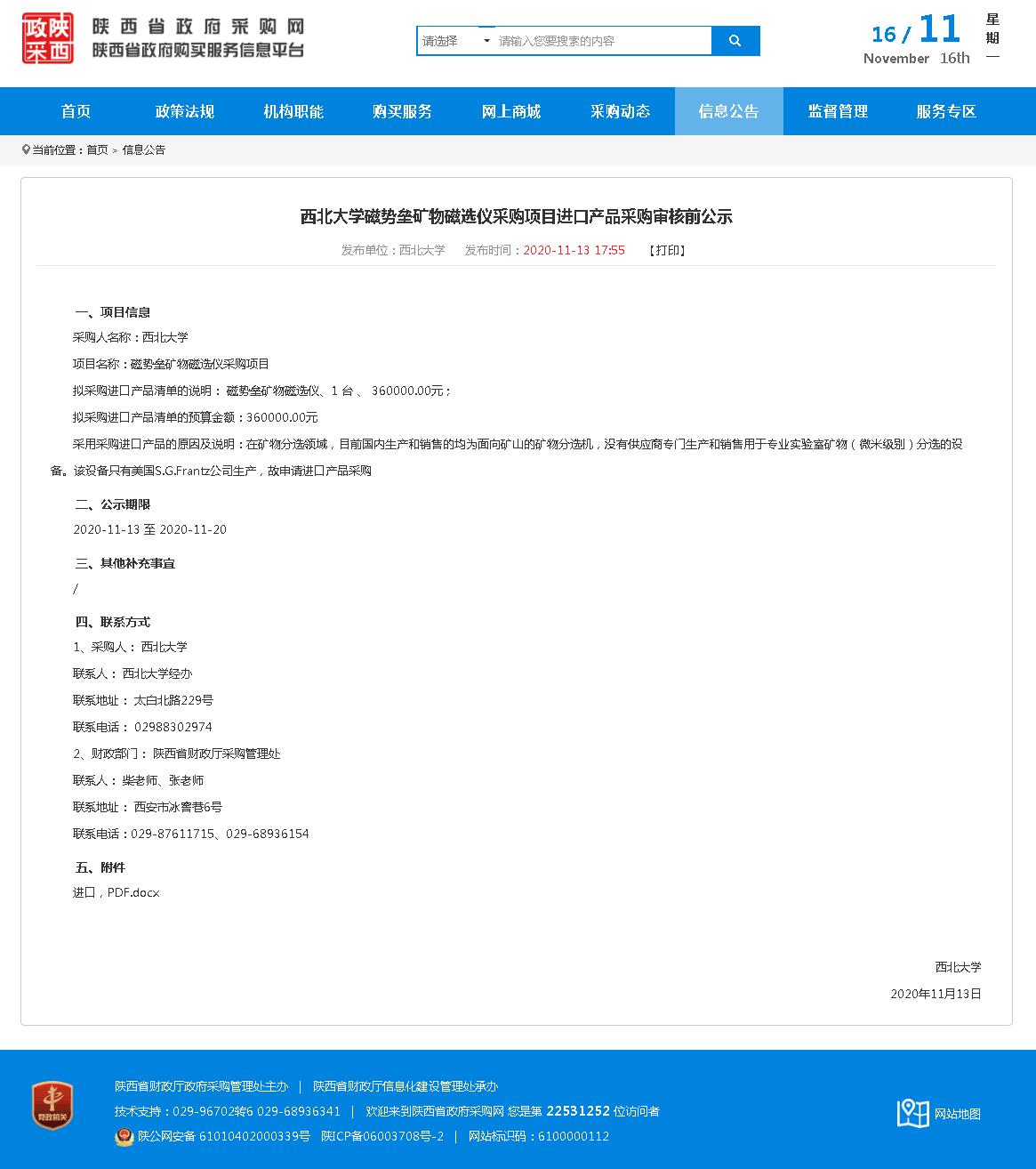 开云网页版登录入口磁势垒矿物磁选仪采购项目进口产品采购审核前公示