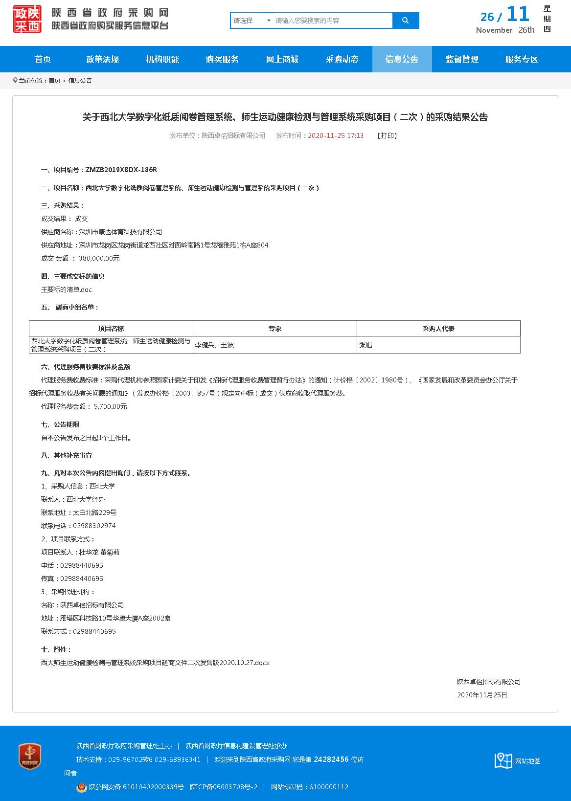 关于开云网页版登录入口数字化纸质阅卷管理系统、师生运动健康检测与管理系统采购项目(二次)的采购结果公告