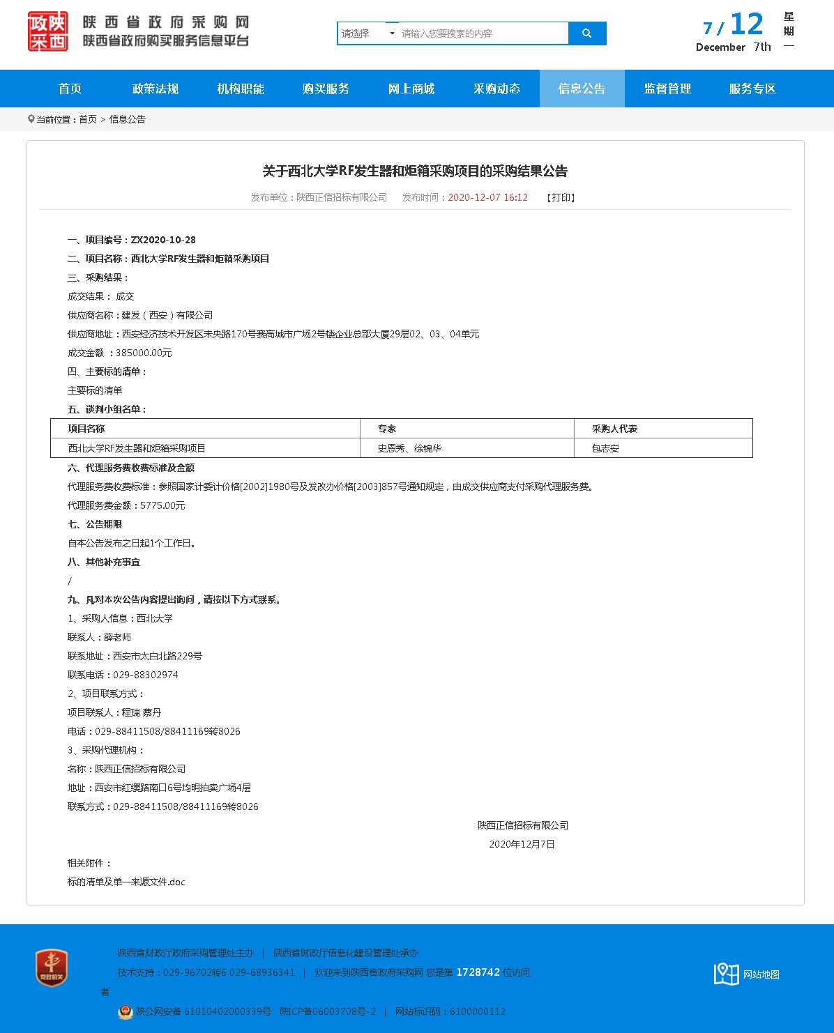 开云网页版登录入口RF发生器和炬箱采购项目的采购结果公告