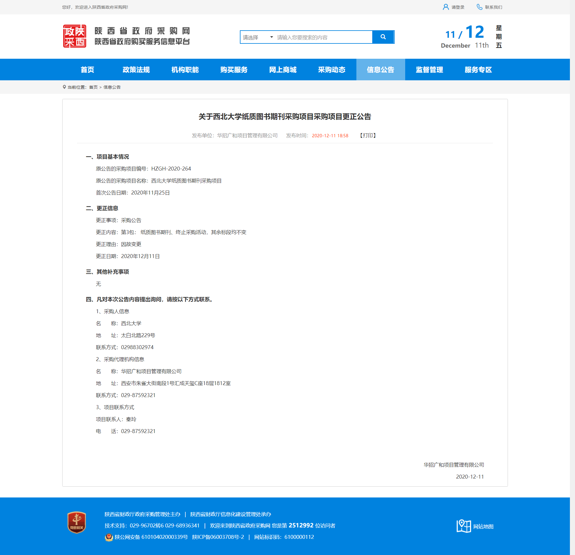 关于开云网页版登录入口纸质图书期刊采购项目采购项目更正公告 作者: 编辑:薛利娟 时间:2020-12-11 原公告地址:http://www.ccgp-shaanxi.gov.cn/notice/noticeDetail.do?noticeguid=8a85be3475d5d52d017641b1340e7790