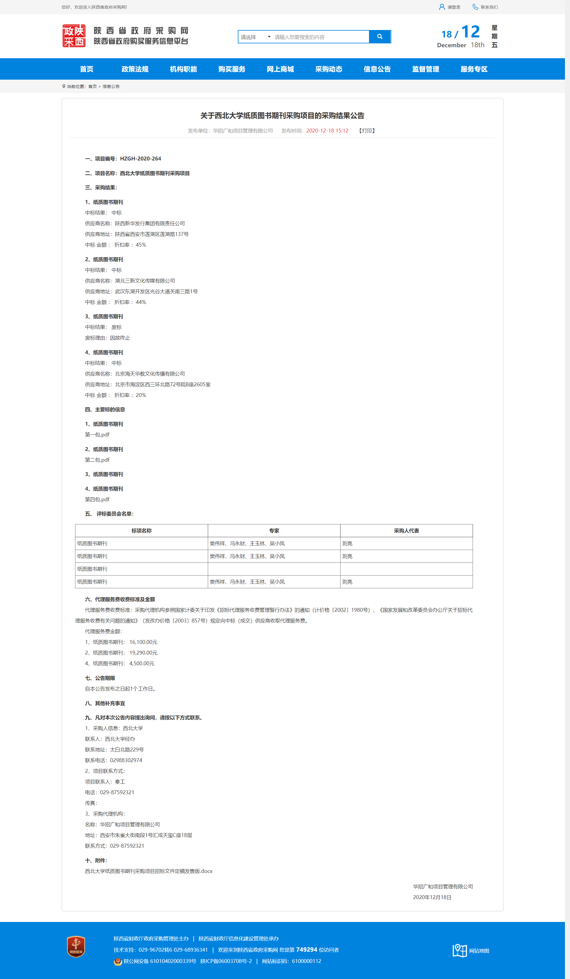 关于开云网页版登录入口纸质图书期刊采购项目的采购结果公告 作者: 编辑:薛利娟 时间:2020-12-18 原公告地址:http://www.ccgp-shaanxi.gov.cn/notice/noticeDetail.do?noticeguid=8a85be32765f9c9b017674ac3d207427