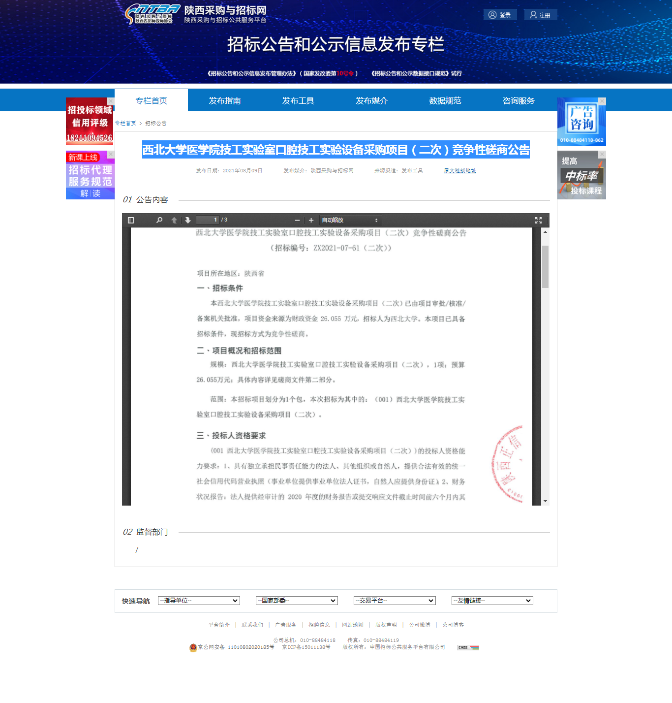 开云网页版登录入口医学院技工实验室口腔技工实验设备采购项目(二次)竞争性磋商公告 作者: 编辑:采购与招标办公室 时间:2021-08-09 原公告地址:http://bulletin.sntba.com/biddingBulletin/2021-08-09/328931.html