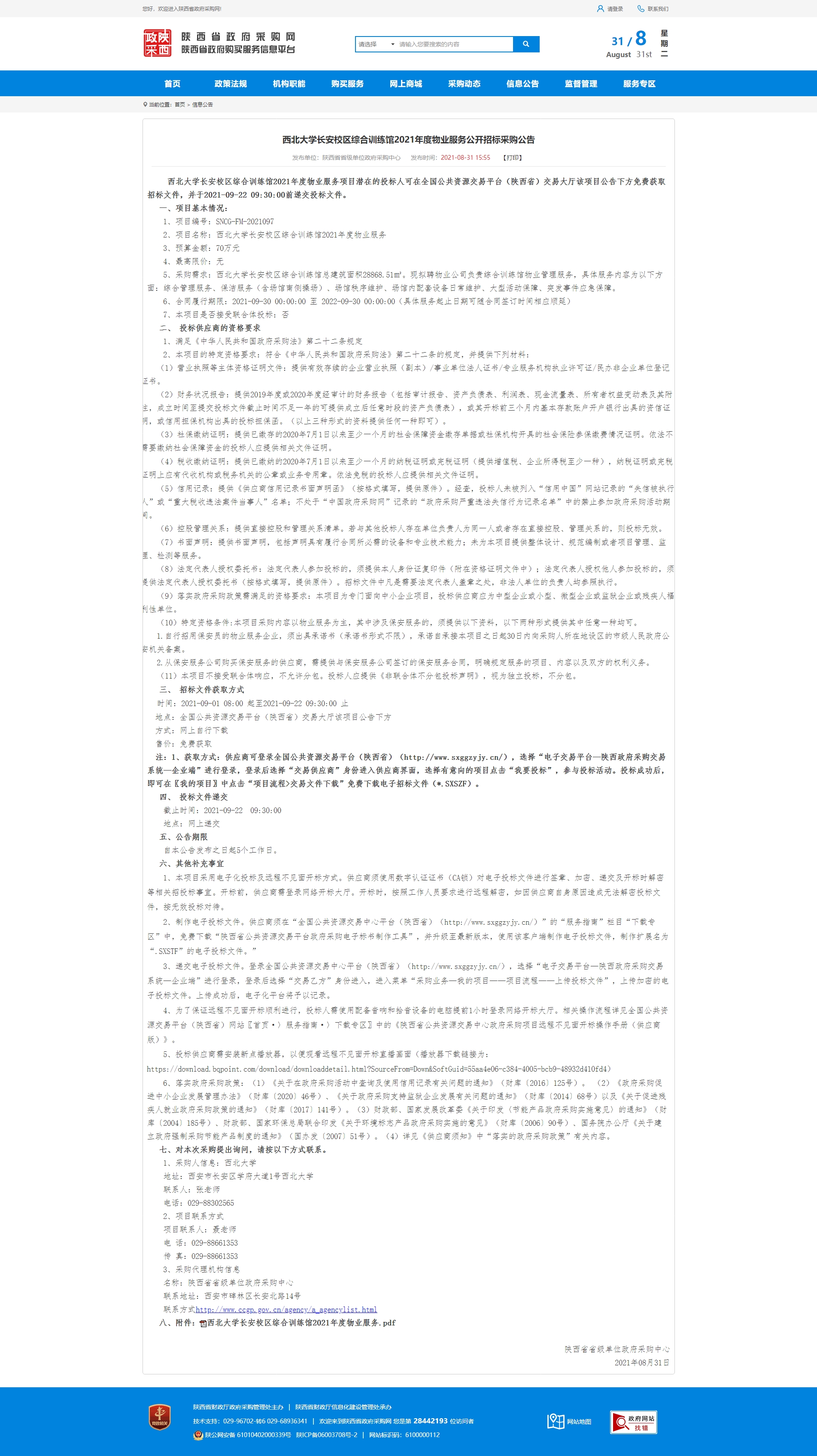 开云网页版登录入口长安校区综合训练馆2021年度物业服务公开招标采购公告