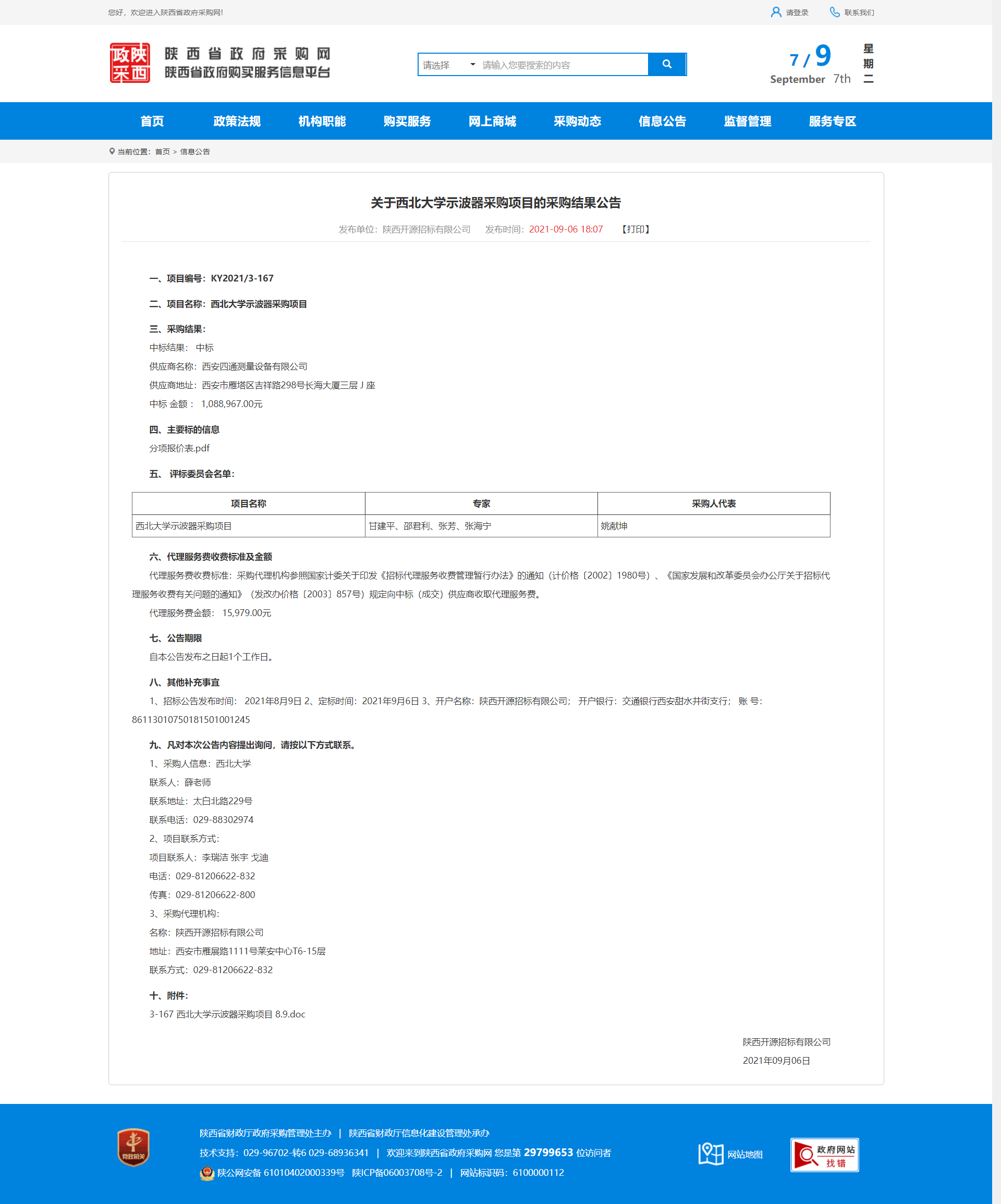 关于开云网页版登录入口示波器采购项目的采购结果公告 作者: 编辑:采购与招标办公室 时间:2021-09-07 原公告地址:http://www.ccgp-shaanxi.gov.cn/notice/noticeDetail.do?noticeguid=8a85be347b04610d017bba92520e4e63