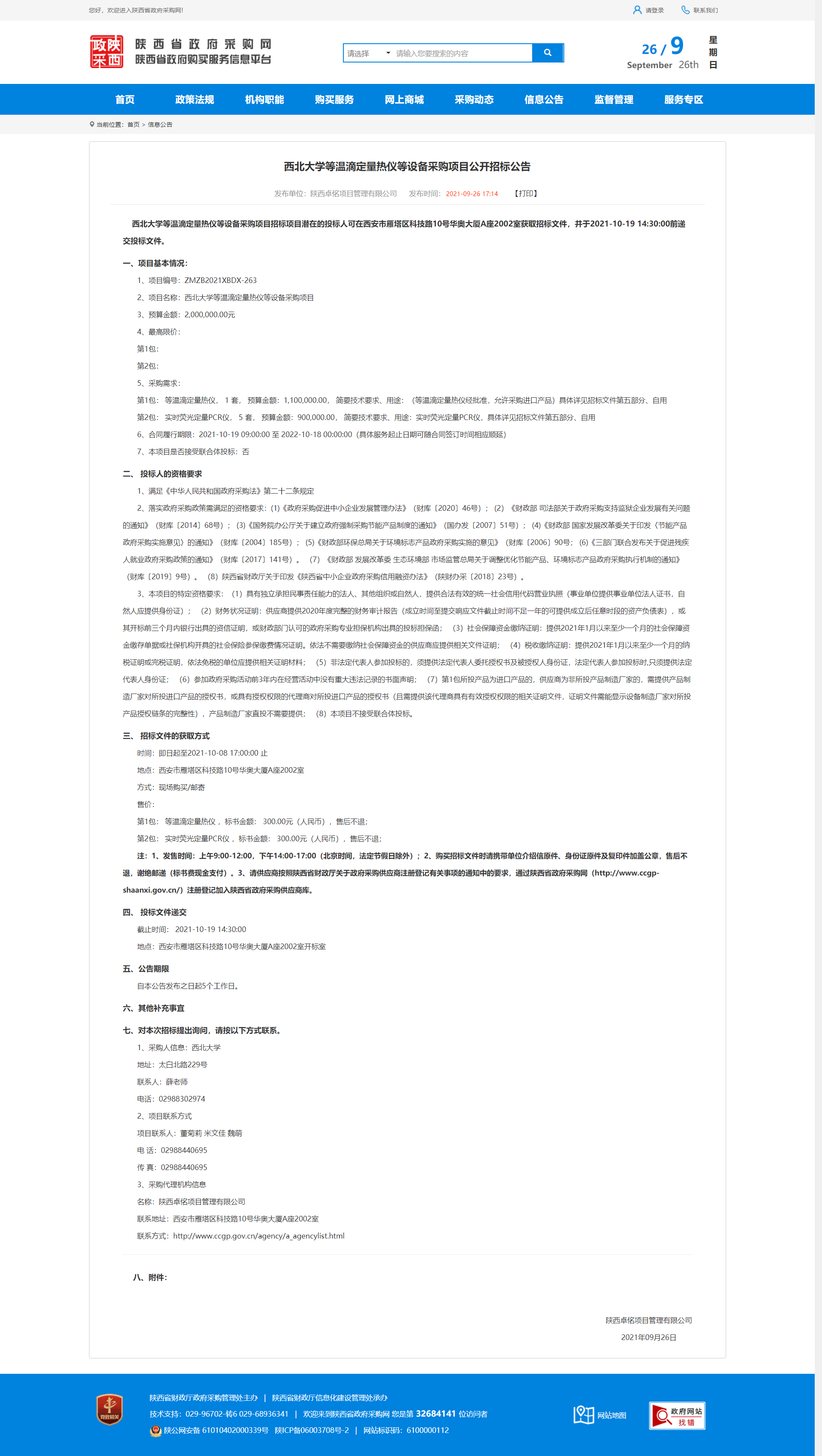 开云网页版登录入口等温滴定量热仪等设备采购项目公开招标公告 作者: 编辑:采购与招标办公室 时间:2021-09-26 原公告地址:http://www.ccgp-shaanxi.gov.cn/notice/noticeDetail.do?noticeguid=8a85be317c20d707017c21545fc51220
