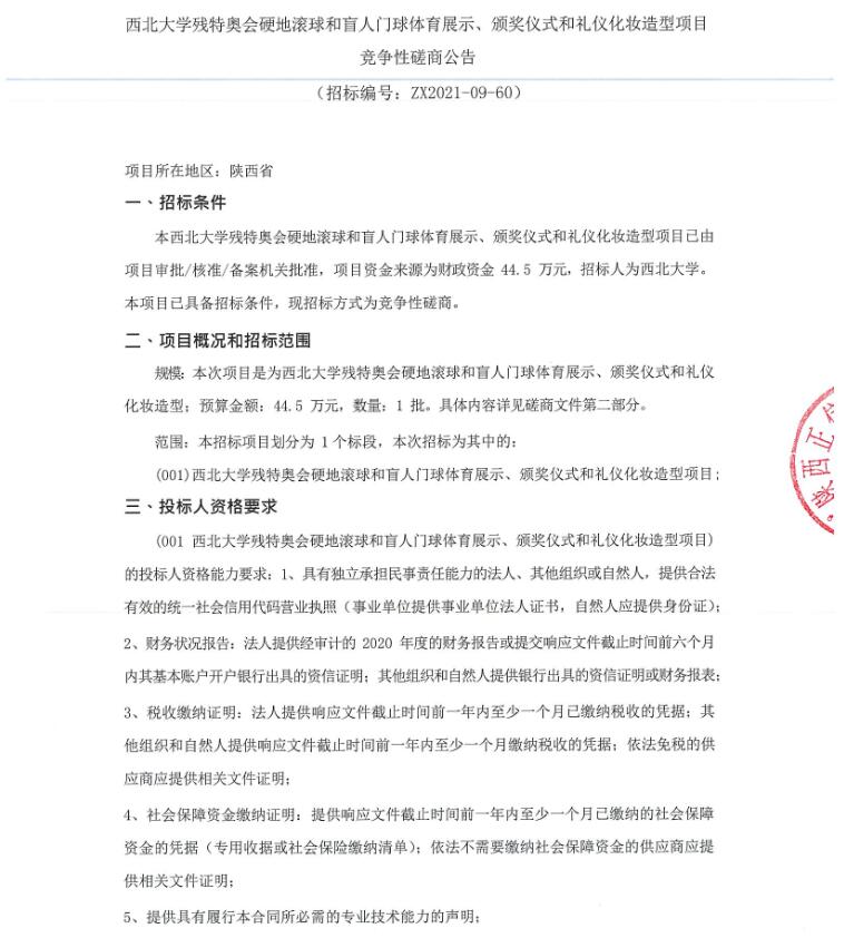 开云网页版登录入口残特奥会硬地滚球和盲人门球体育展示、颁奖仪式和礼仪化妆造型项目竞争性磋商公告