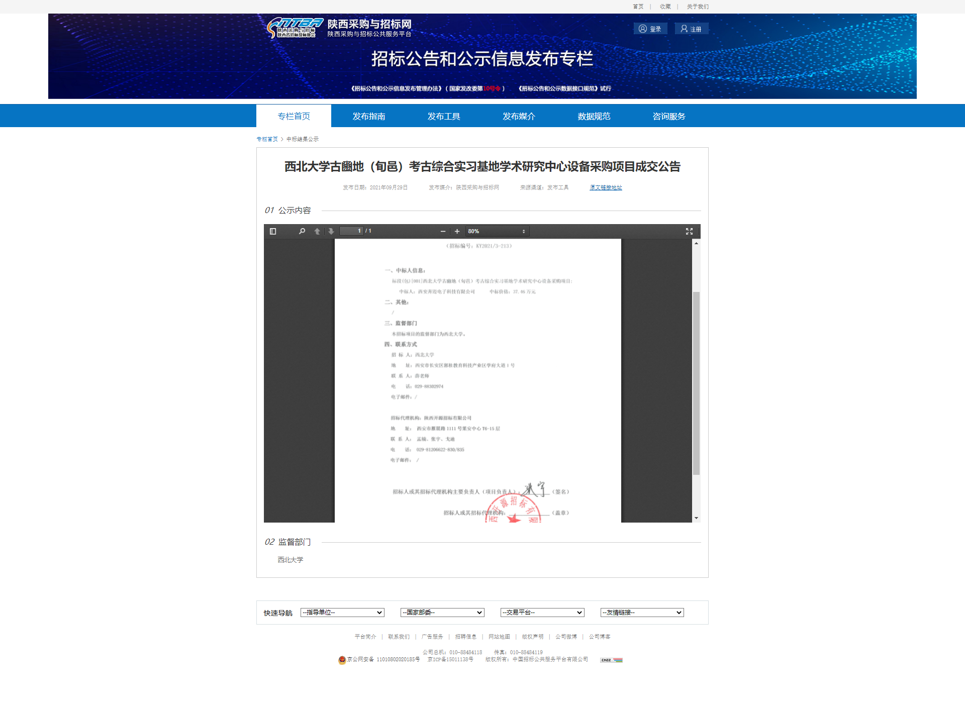 开云网页版登录入口古豳地(旬邑)考古综合实习基地学术研究中心设备采购项目成交公告 作者: 编辑:采购与招标办公室 时间:2021-09-29 原公告地址:http://bulletin.sntba.com/resultBulletin/2021-09-29/348615.html