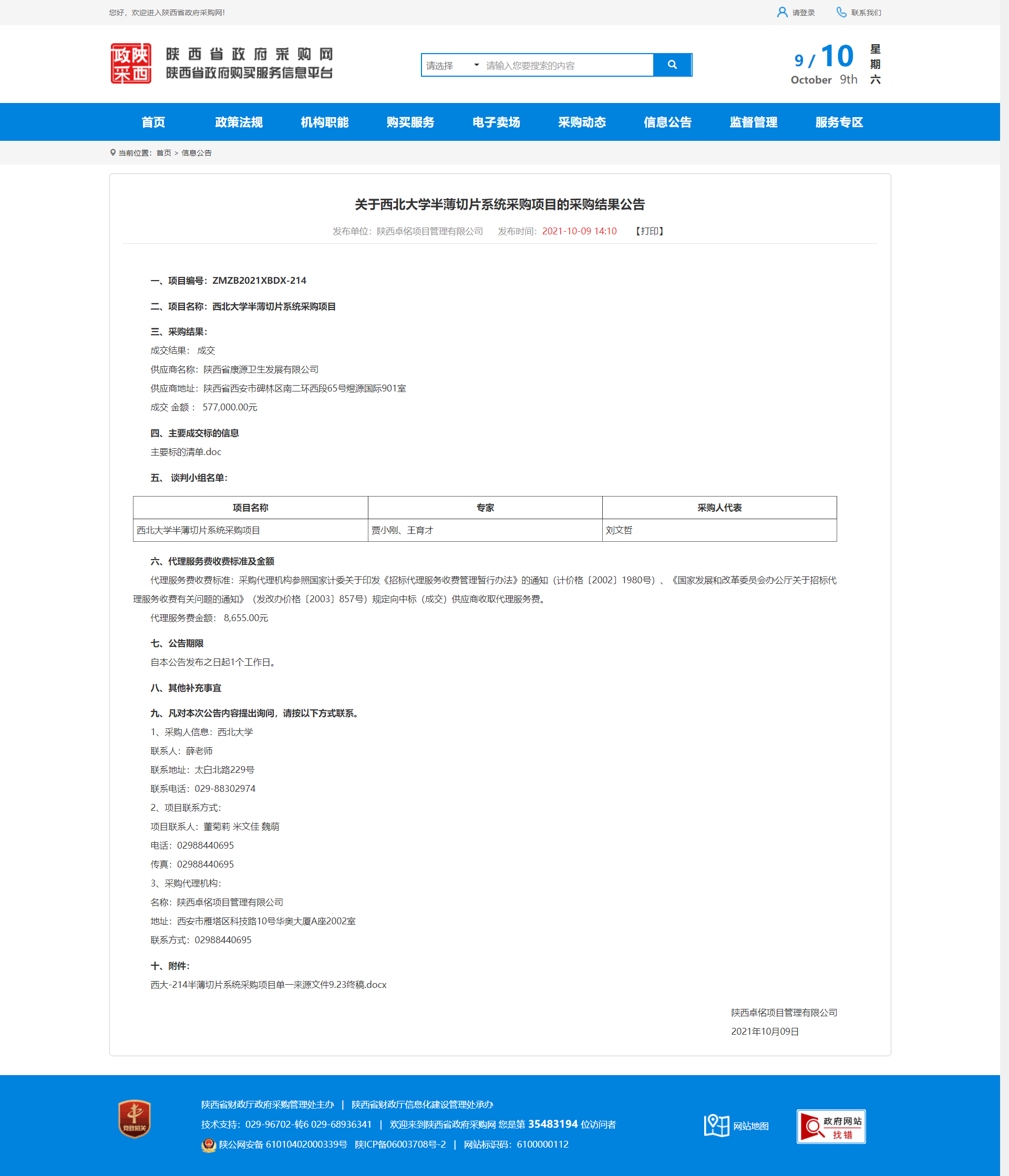 关于开云网页版登录入口半薄切片系统采购项目的采购结果公告 作者: 编辑:采购与招标办公室 时间:2021-10-09 原公告地址:http://www.ccgp-shaanxi.gov.cn/notice/noticeDetail.do?noticeguid=8a85be337c20d0b4017c63ab46ca5540