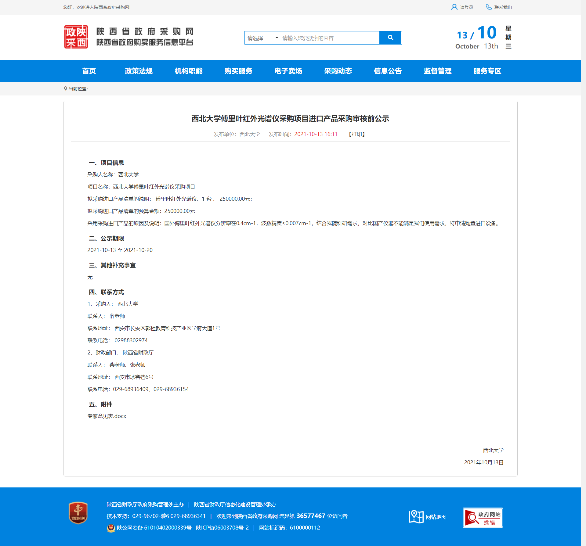开云网页版登录入口傅里叶红外光谱仪采购项目进口产品采购审核前公示 作者: 编辑:采购与招标办公室 时间:2021-10-13 原公告地址:http://www.ccgp-shaanxi.gov.cn/notice/noticeDetail.do?noticeguid=8a85be327c20d508017c78afc0e74db6