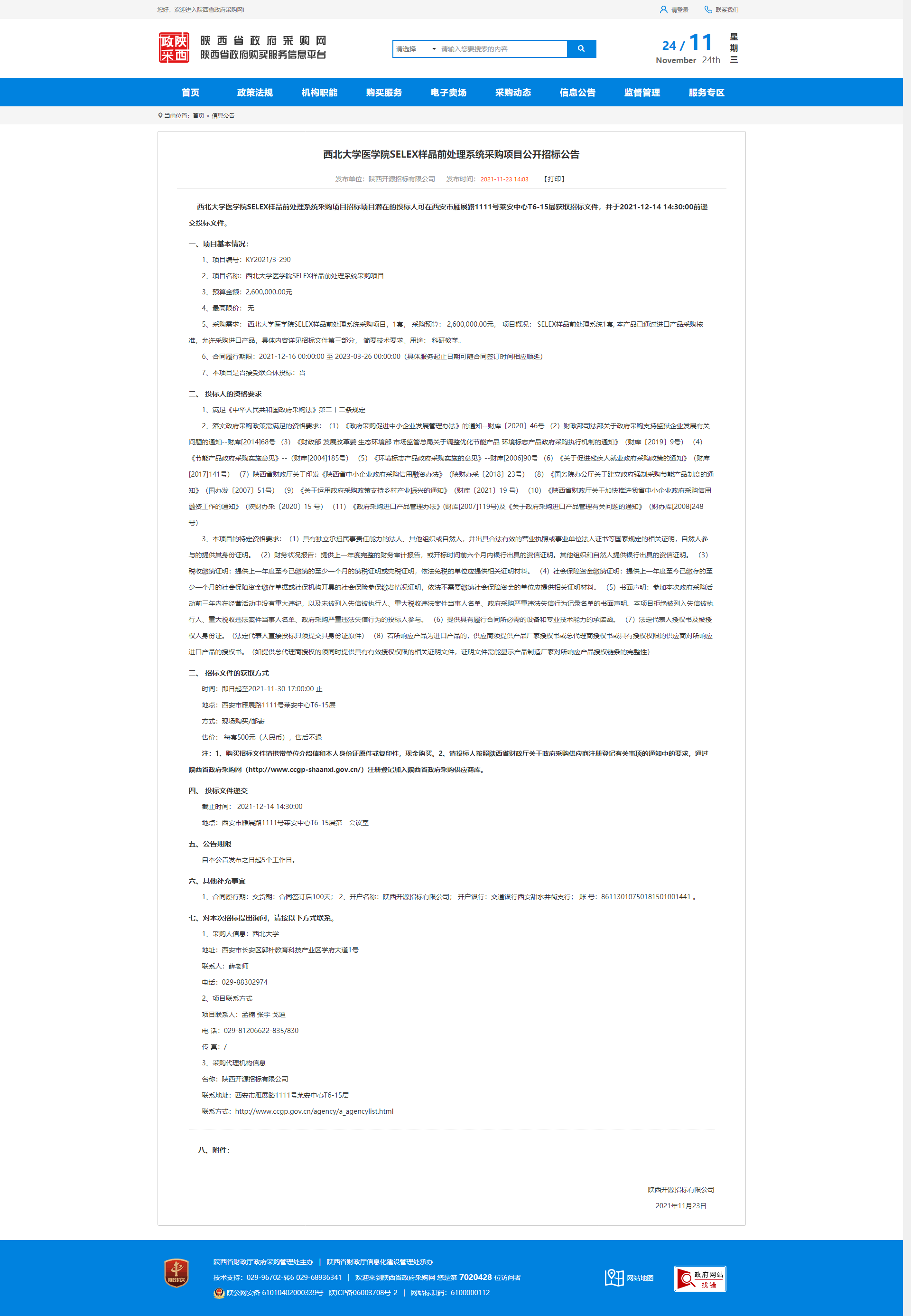 开云网页版登录入口医学院SELEX样品前处理系统采购项目公开招标公告 作者: 编辑:薛利娟 时间:2021-11-24 原公告网址:http://www.ccgp-shaanxi.gov.cn/notice/noticeDetail.do?noticeguid=8a85be327d2d74ab017d4b5ce2de36ff