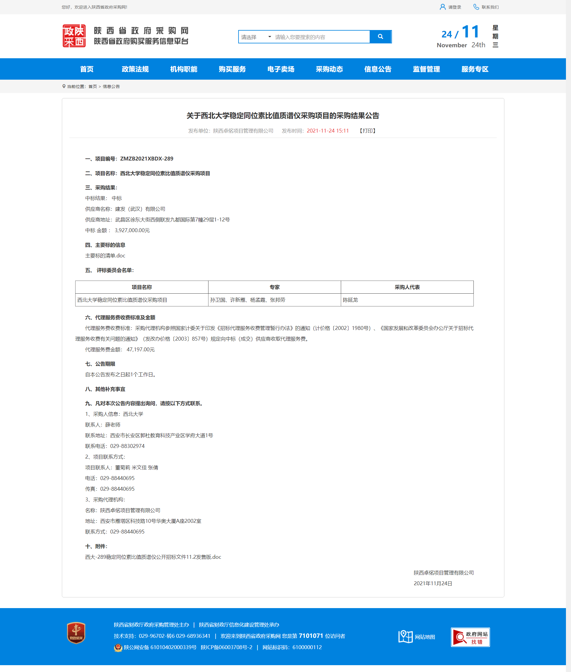 关于开云网页版登录入口稳定同位素比值质谱仪采购项目的采购结果公告 作者: 编辑:薛利娟 时间:2021-11-24 原公告网址:http://www.ccgp-shaanxi.gov.cn/notice/noticeDetail.do?noticeguid=8a85be347d2d6f8d017d50c513e326e6