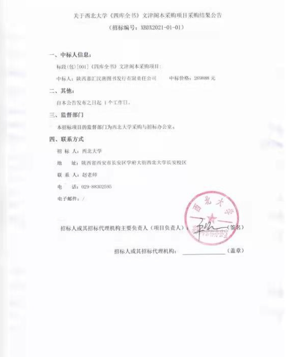 关于开云网页版登录入口《四库全书》文津阁本采购项目成交结果公告