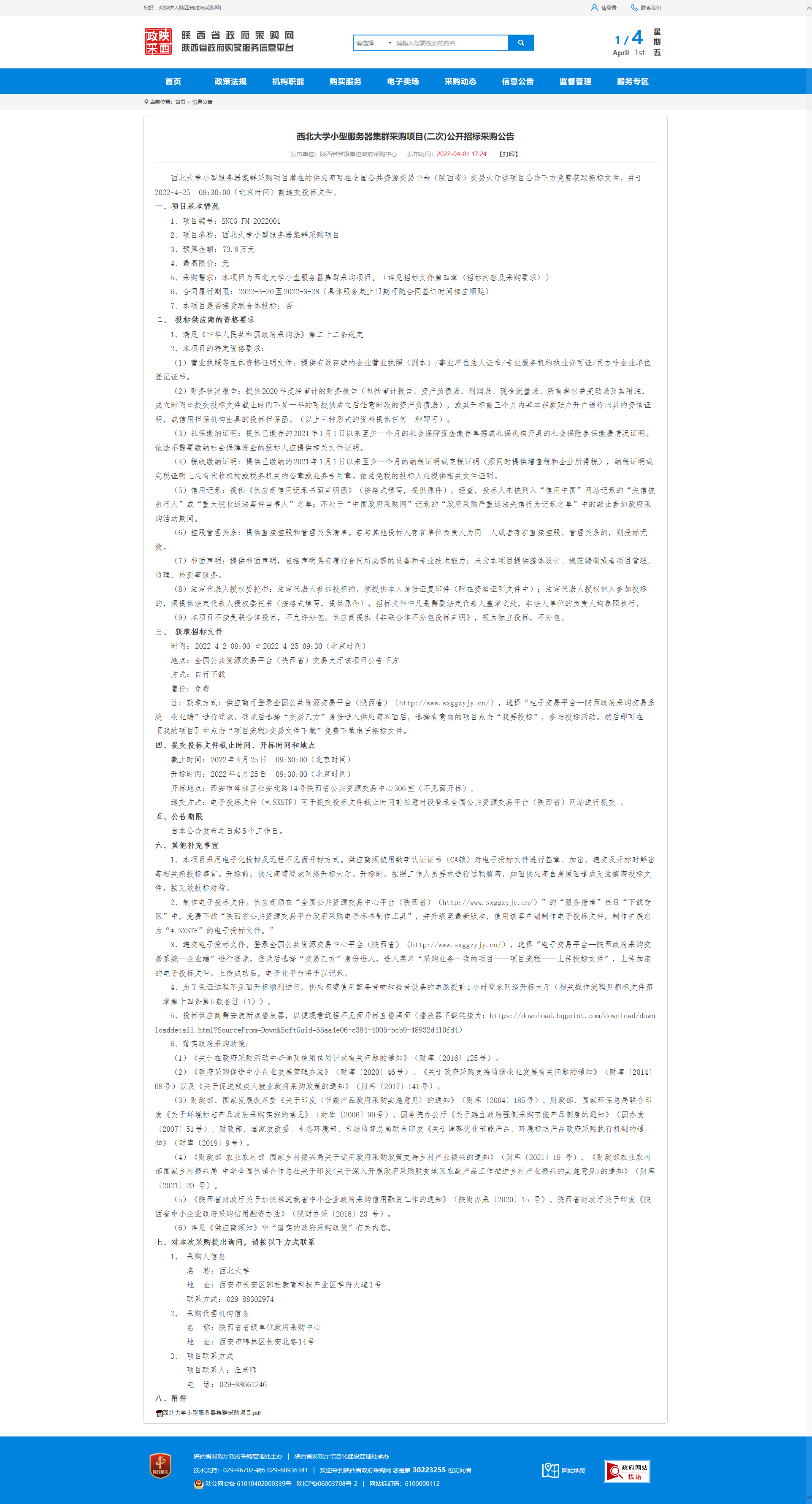 开云网页版登录入口小型服务器集群采购项目(二次)公开招标采购公告 作者: 编辑:薛利娟 时间:2022-04-01 原公告链接:http://113.200.80.230/notice/noticeDetail.do?noticeguid=8a85be387f91f0bf017fe46ddbfd001c