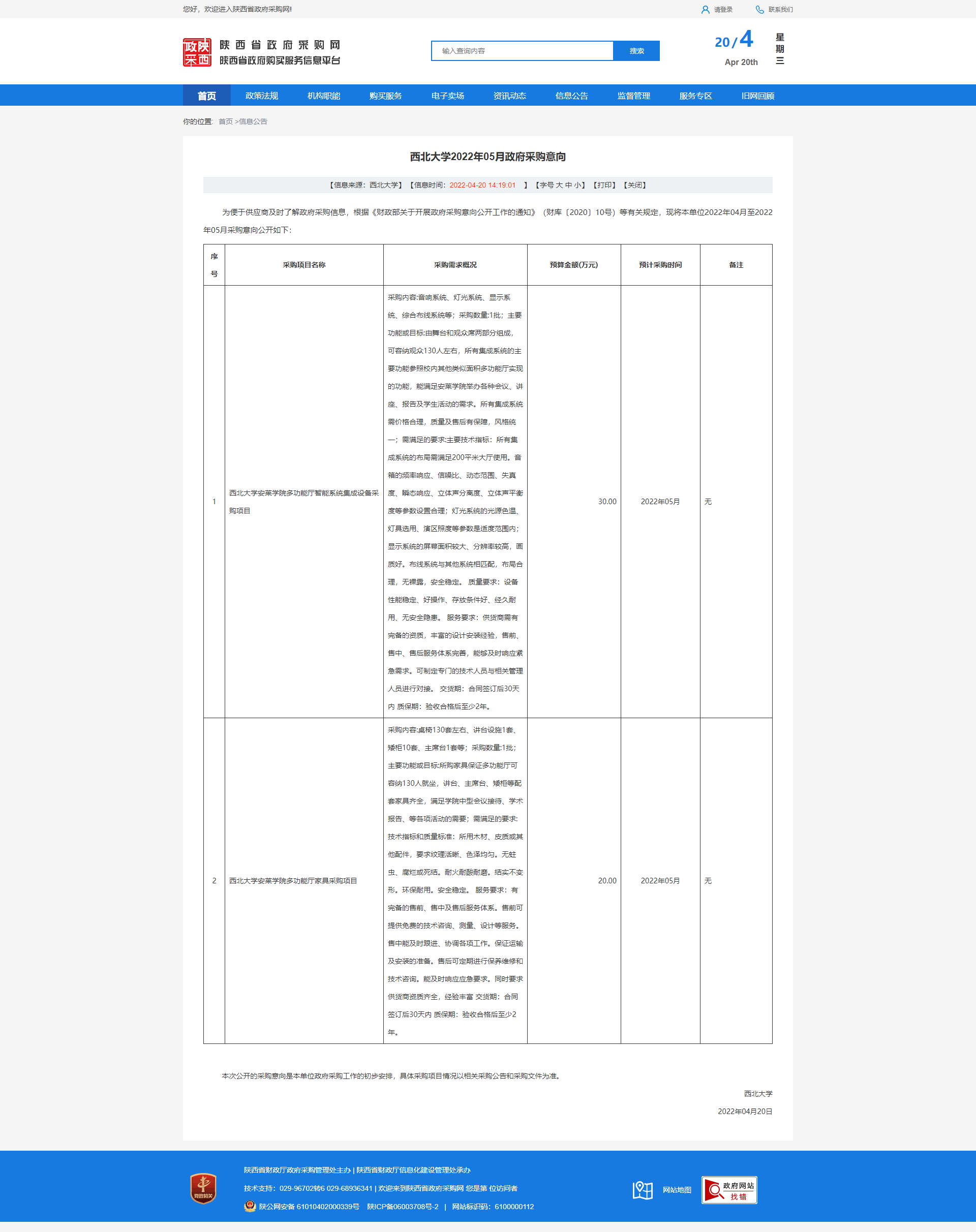 开云网页版登录入口2022年05月政府采购意向 作者: 编辑:薛利娟 时间:2022-04-20 原公告链接:http://www.ccgp-shaanxi.gov.cn/freecms/site/shaanxi/ggxx/info/2022/8a69c6fa803f5d71018044f8ef4371e6.html?noticeType=59¬iceId=ec2f07d2-c071-11ec-9a8e-08c0eb20c666