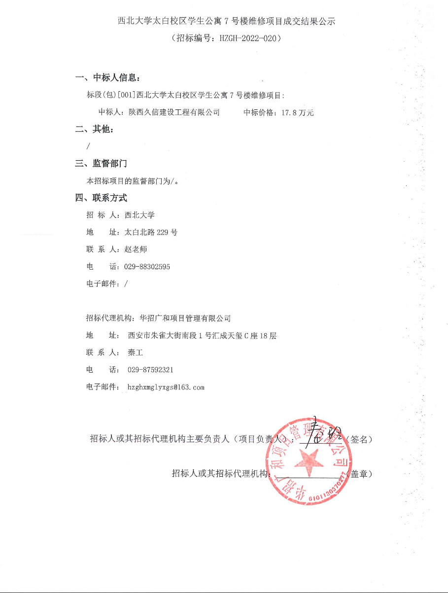开云网页版登录入口太白校区学生公寓7号楼维修项目成交结果公示
