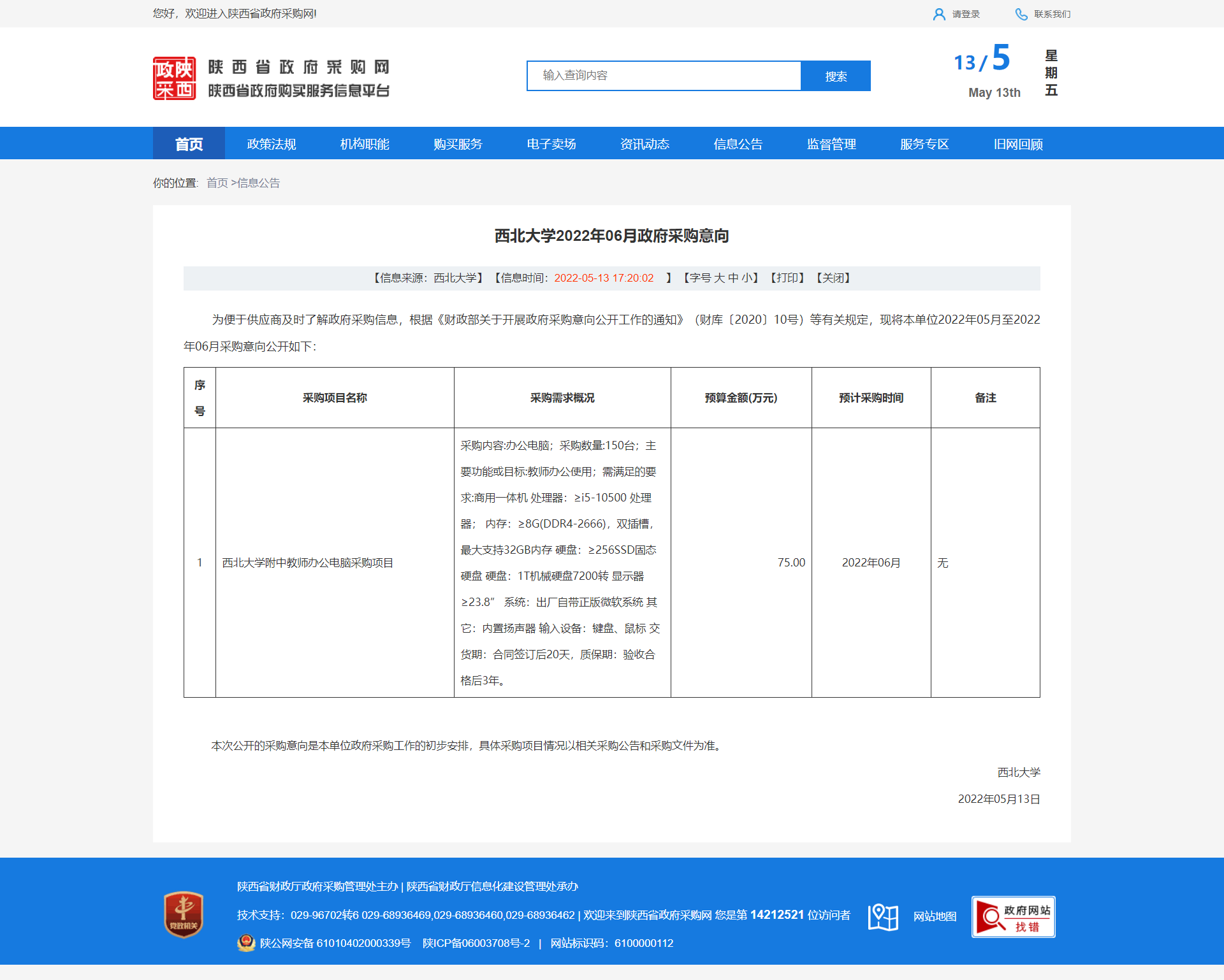 开云网页版登录入口2022年06月政府采购意向 作者: 编辑:薛利娟 时间:2022-05-13 原公告链接:http://www.ccgp-shaanxi.gov.cn/freecms/site/shaanxi/ggxx/info/2022/8a69c0c980ba996a0180bcb638123331.html?noticeType=59¬iceId=147b64d1-d29e-11ec-9a8e-08c0eb20c666