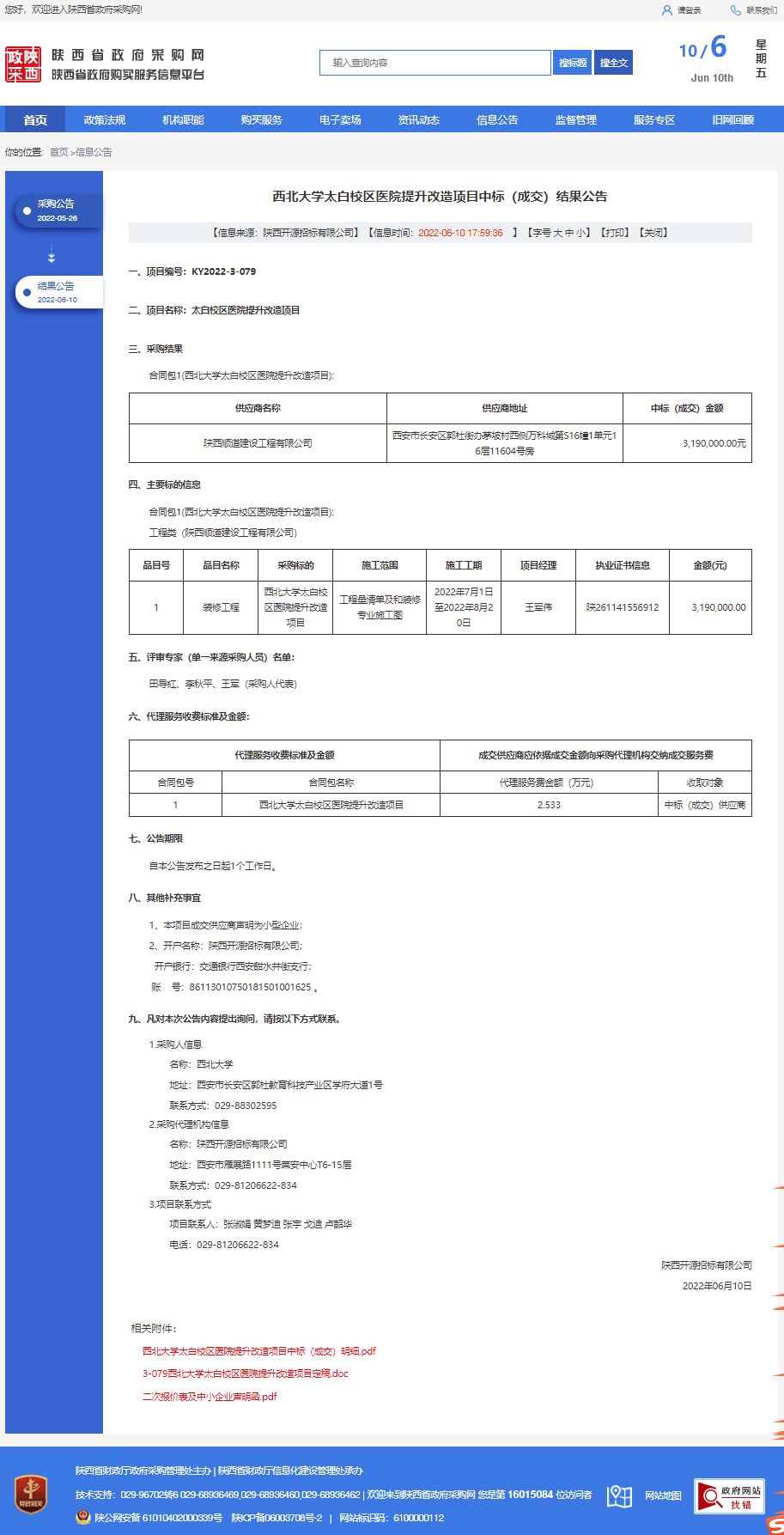 开云网页版登录入口太白校区医院提升改造项目中标(成交)结果公告