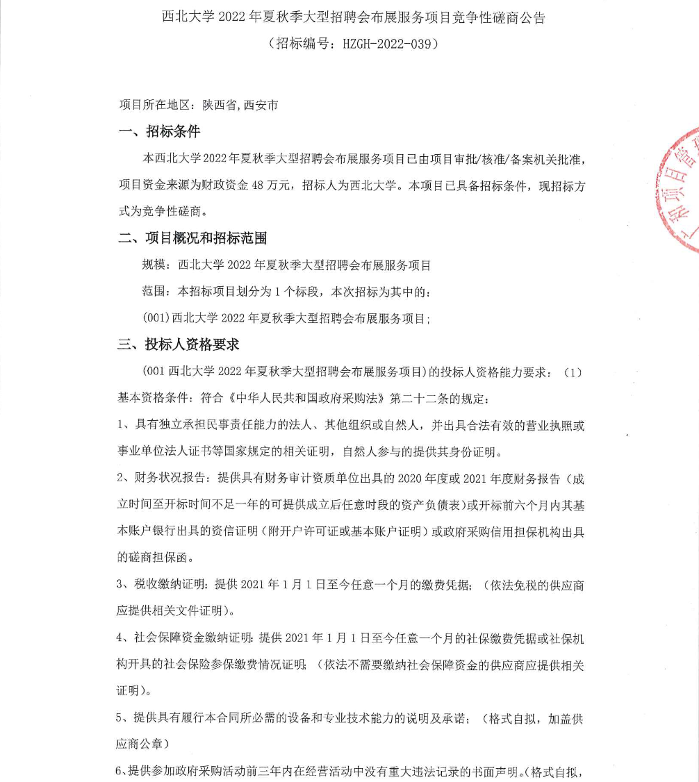 开云网页版登录入口2022年夏秋季大型招聘会布展服务项目竞争性磋商公告