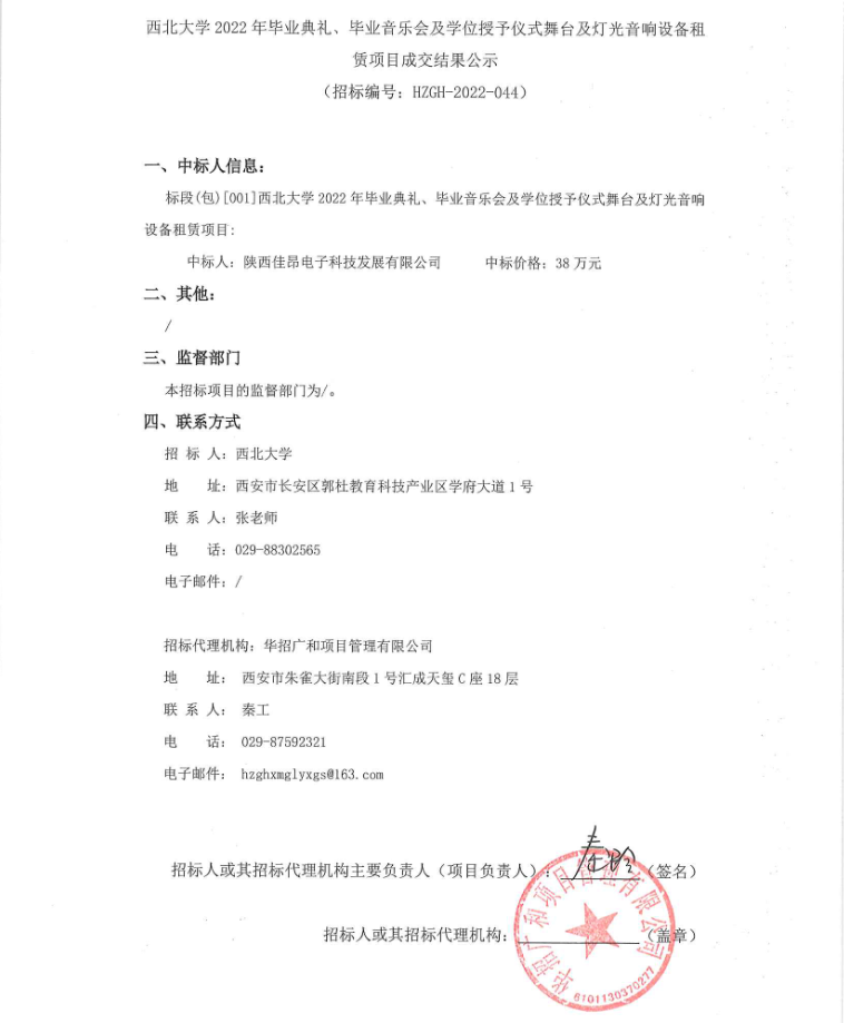 关于开云网页版登录入口2022年毕业典礼、毕业音乐会及学位授予仪式舞台及灯光音响设备租赁项目成交结果公示
