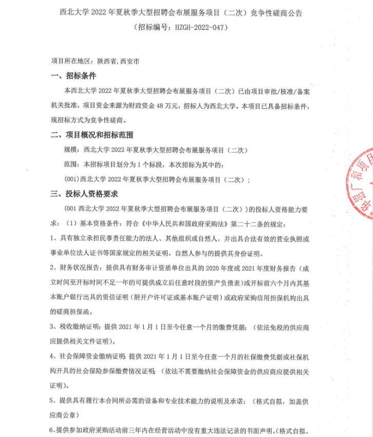 开云网页版登录入口2022年夏秋季大型招聘会布展服务项目(二次)竞争性磋商公告