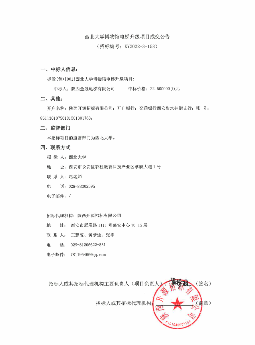 开云网页版登录入口博物馆电梯升级项目成交公告