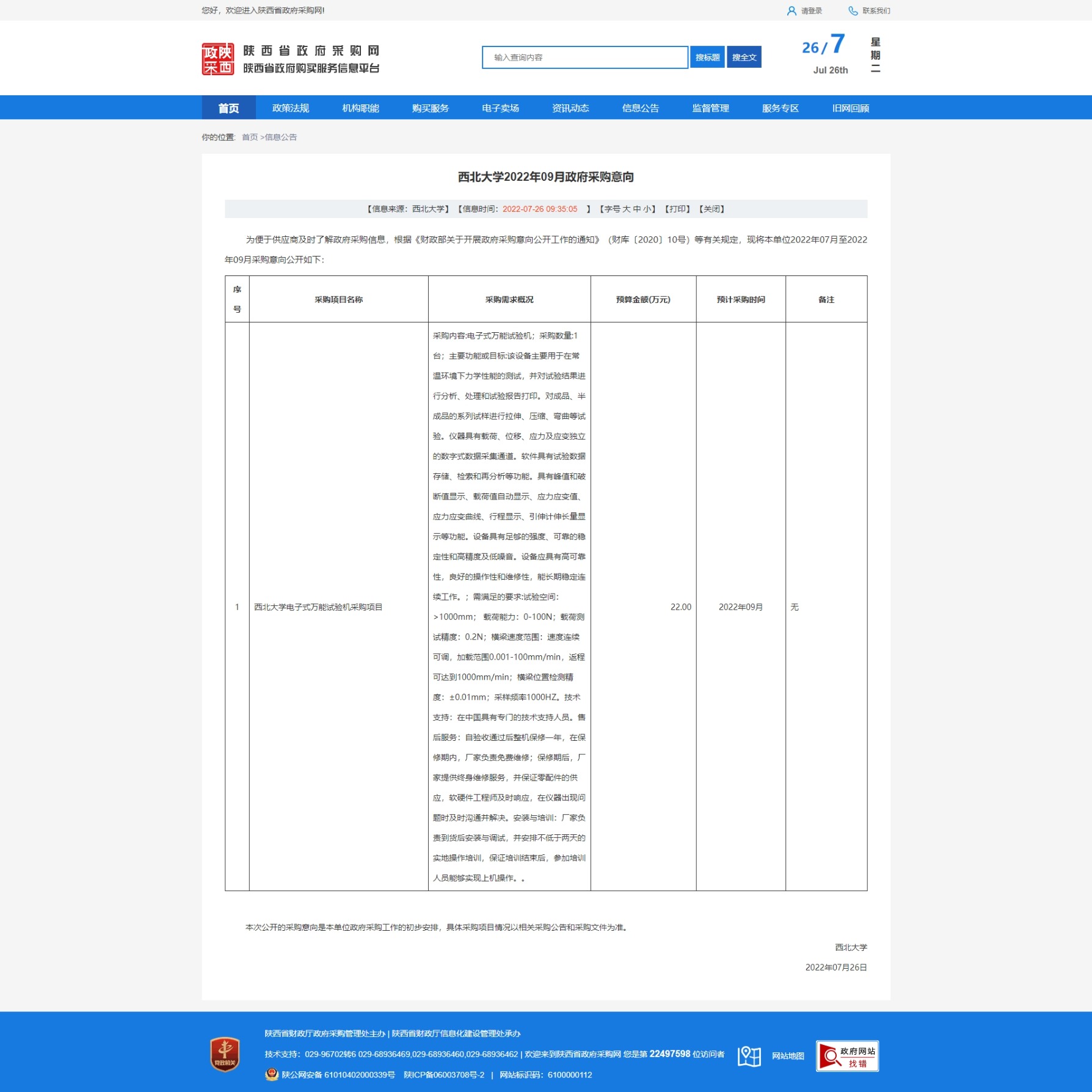 开云网页版登录入口2022年09月政府采购意向 作者: 编辑:采购与招标办公室 时间:2022-07-26 原公告链接:http://www.ccgp-shaanxi.gov.cn/freecms/site/shaanxi/ggxx/info/2022/8a69c98382103559018210e050bc5cf5.html?noticeType=59¬iceId=9116edec-0c83-11ed-9a8e-08c0eb20c666