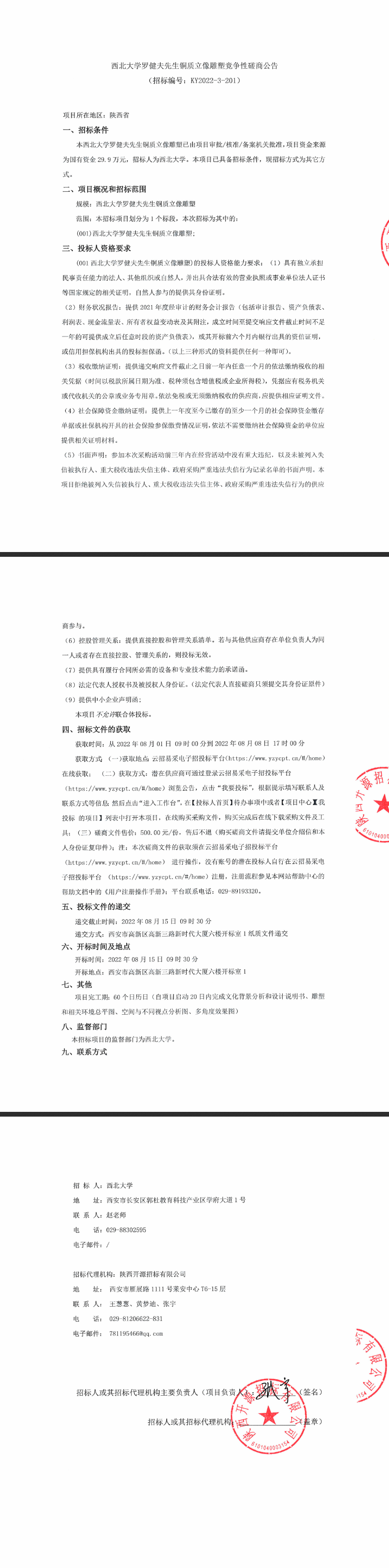 开云网页版登录入口罗健夫先生铜质立像雕塑竞争性磋商公告