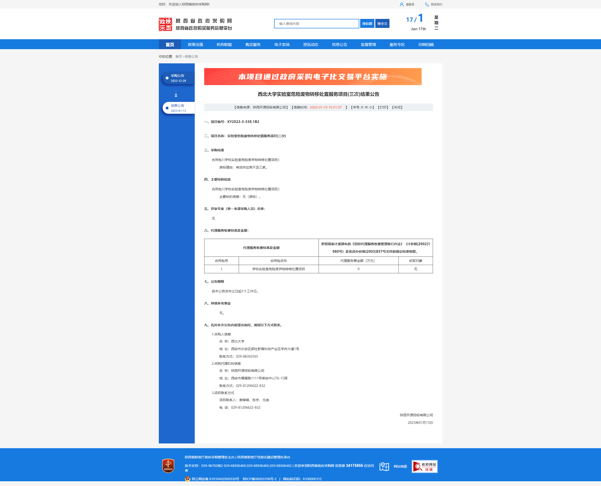 开云网页版登录入口实验室危险废物转移处置服务项目(三次)结果公告