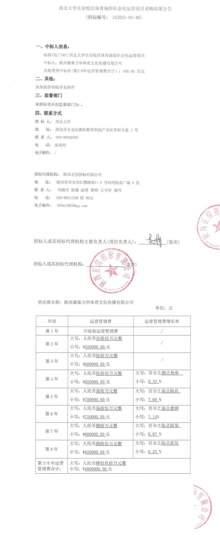 开云网页版登录入口长安校区体育场馆社会化运营项目采购结果公告