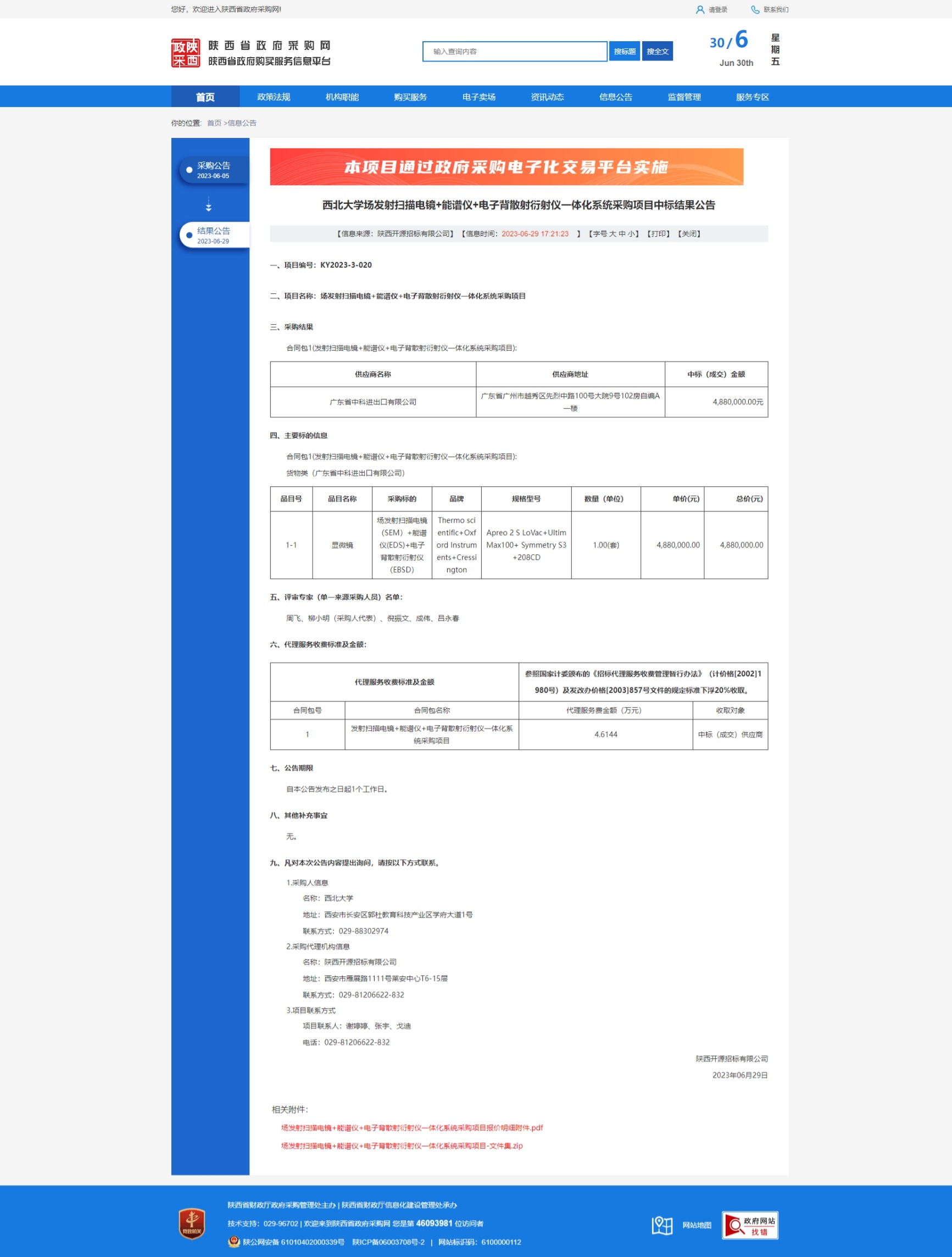 开云网页版登录入口场发射扫描电镜+能谱仪+电子背散射衍射仪一体化系统采购项目中标结果公告 作者: 编辑:采购与招标办公室 时间:2023-06-30 原公告链接:http://www.ccgp-shaanxi.gov.cn/freecms/site/shaanxi/ggxx/info/2023/8a69c93188448612018905d3b5683c0b.html?noticeType=001021¬iceId=6831ceb9-165f-11ee-9a8e-08c0eb20c666