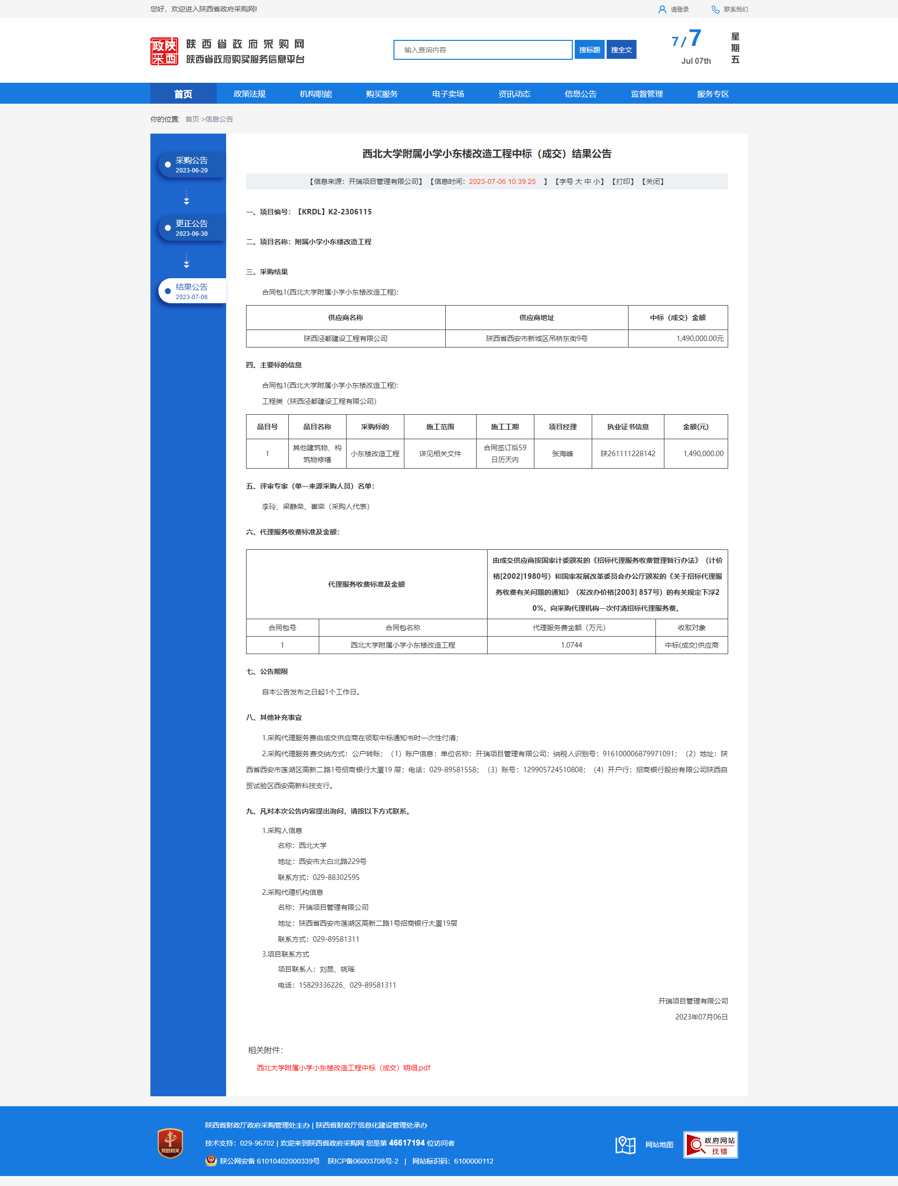 开云网页版登录入口附属小学小东楼改造工程中标(成交)结果公告