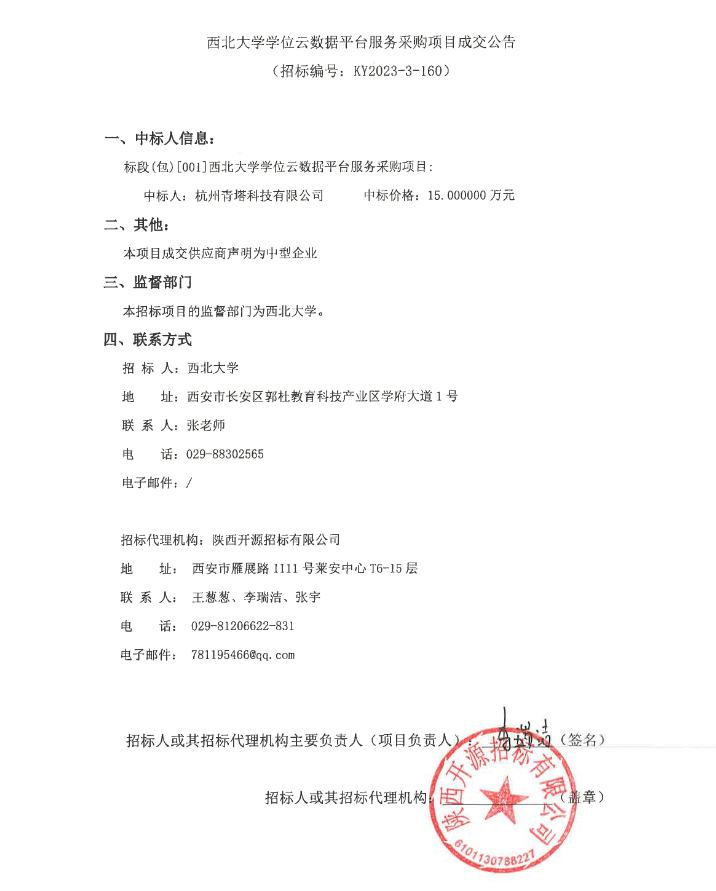 开云网页版登录入口学位云数据平台服务采购项目成交公告