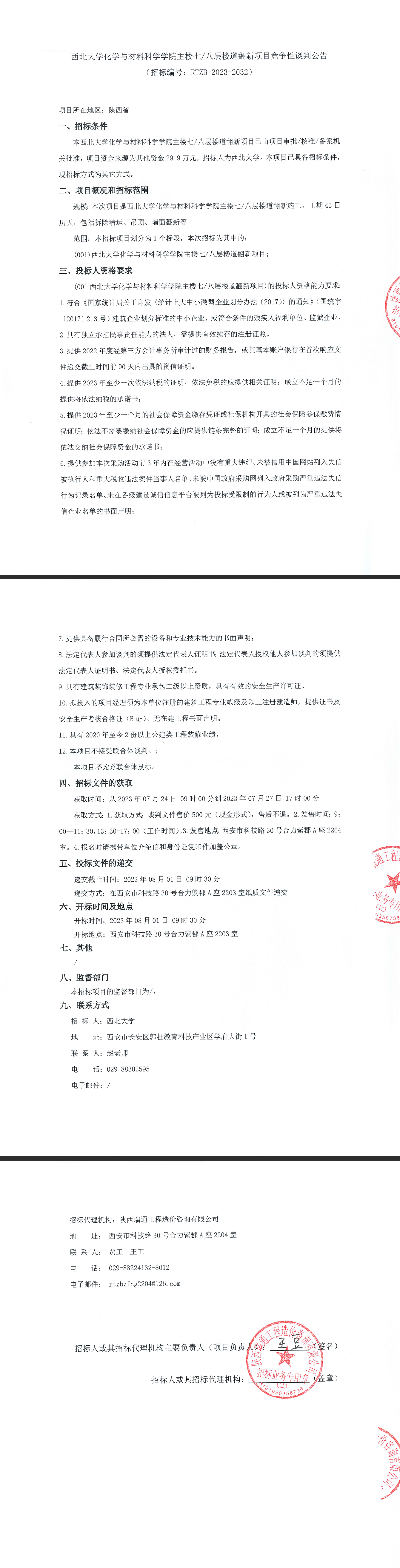 开云网页版登录入口化学与材料科学学院主楼七/八层楼道翻新项目竞争性谈判公告