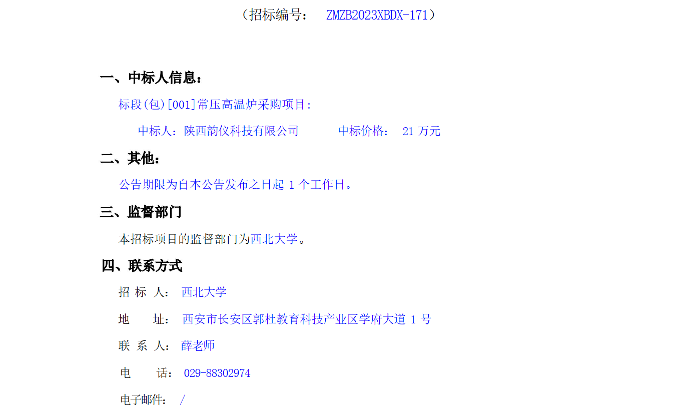 开云网页版登录入口常压高温炉采购项目结果公告 作者: 编辑:采购与招标办公室 时间:2023-08-01 原公告链接:http://bulletin.sntba.com/resultBulletin/2023-08-01/599542.html
