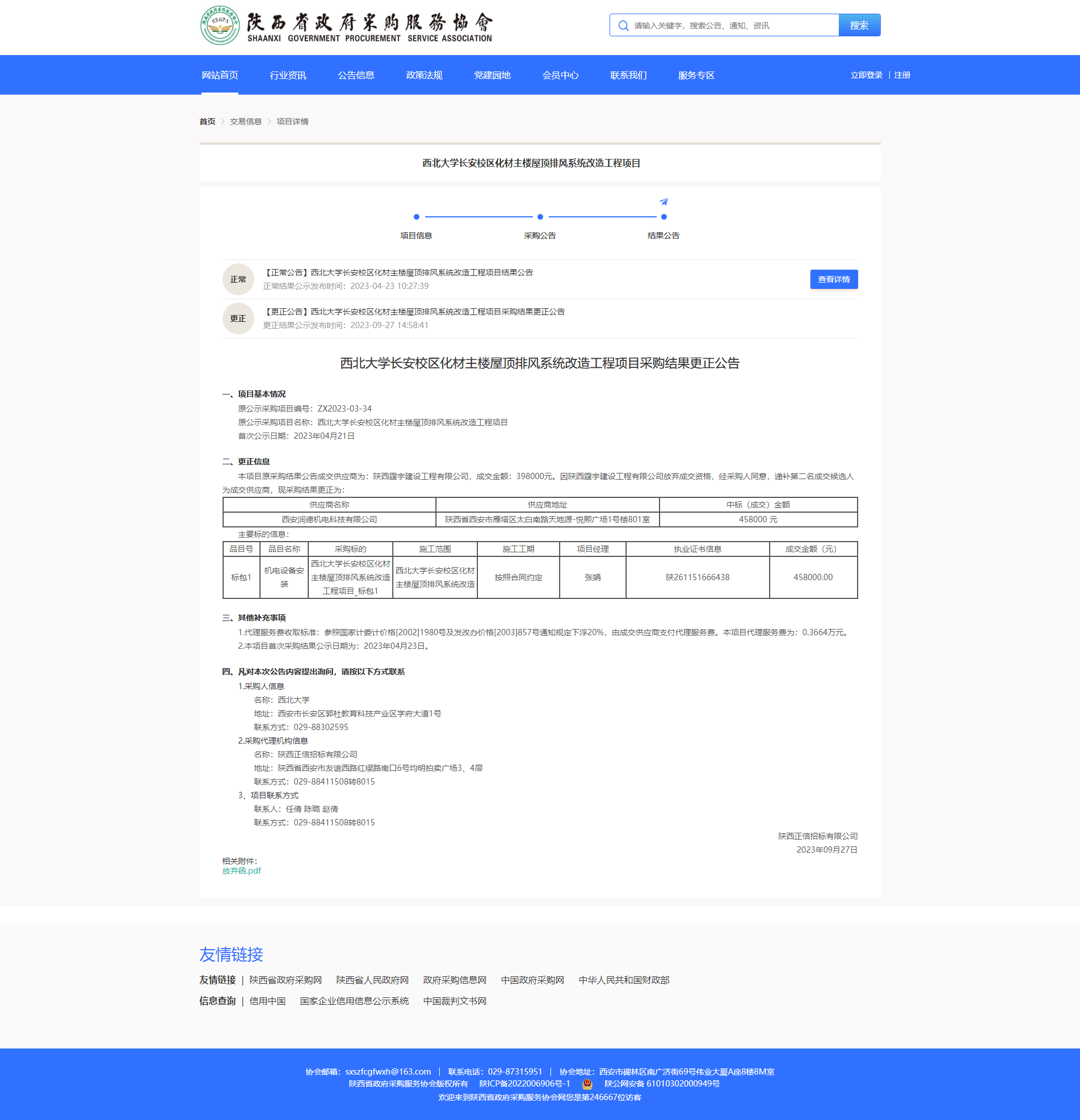 开云网页版登录入口长安校区化材主楼屋顶排风系统改造工程项目采购结果更正公告