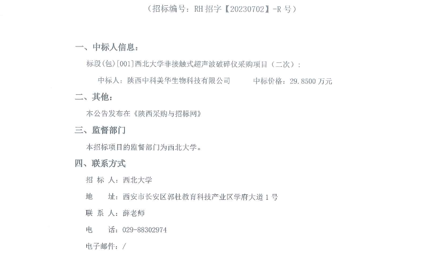开云网页版登录入口非接触式超声波破碎仪采购项目(二次)中标结果公告 作者: 编辑:采购与招标办公室 时间:2023-10-10 原公告链接:http://bulletin.sntba.com/resultBulletin/2023-10-09/714535.html