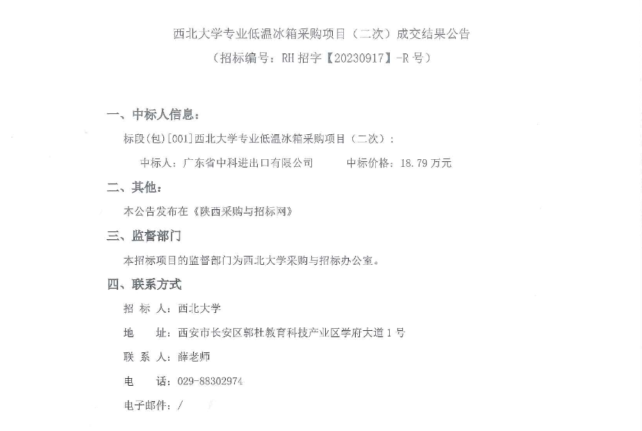 开云网页版登录入口专业低温冰箱采购项目(二次)成交结果公告 作者: 编辑: 时间:2023-11-09 原公告链接:http://bulletin.sntba.com/resultBulletin/2023-11-07/790256.html