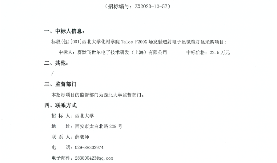 开云网页版登录入口化材学院Talos F200X场发射透射电子显微镜灯丝采购项目成交结果公示 作者: 编辑: 时间:2023-12-05 原公告链接:http://bulletin.sntba.com/resultBulletin/2023-12-05/881283.html