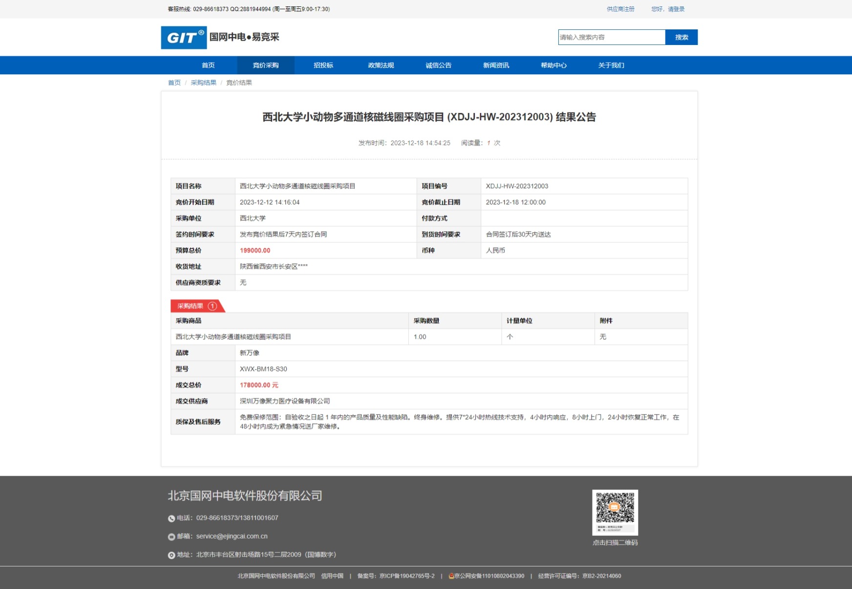 开云网页版登录入口小动物多通道核磁线圈采购项目 (XDJJ-HW-202312003) 结果公告 作者: 编辑:采购与招标办公室 时间:2023-12-18 原公告链接:https://www.ejingcai.com.cn/site/bidding/detail/7904