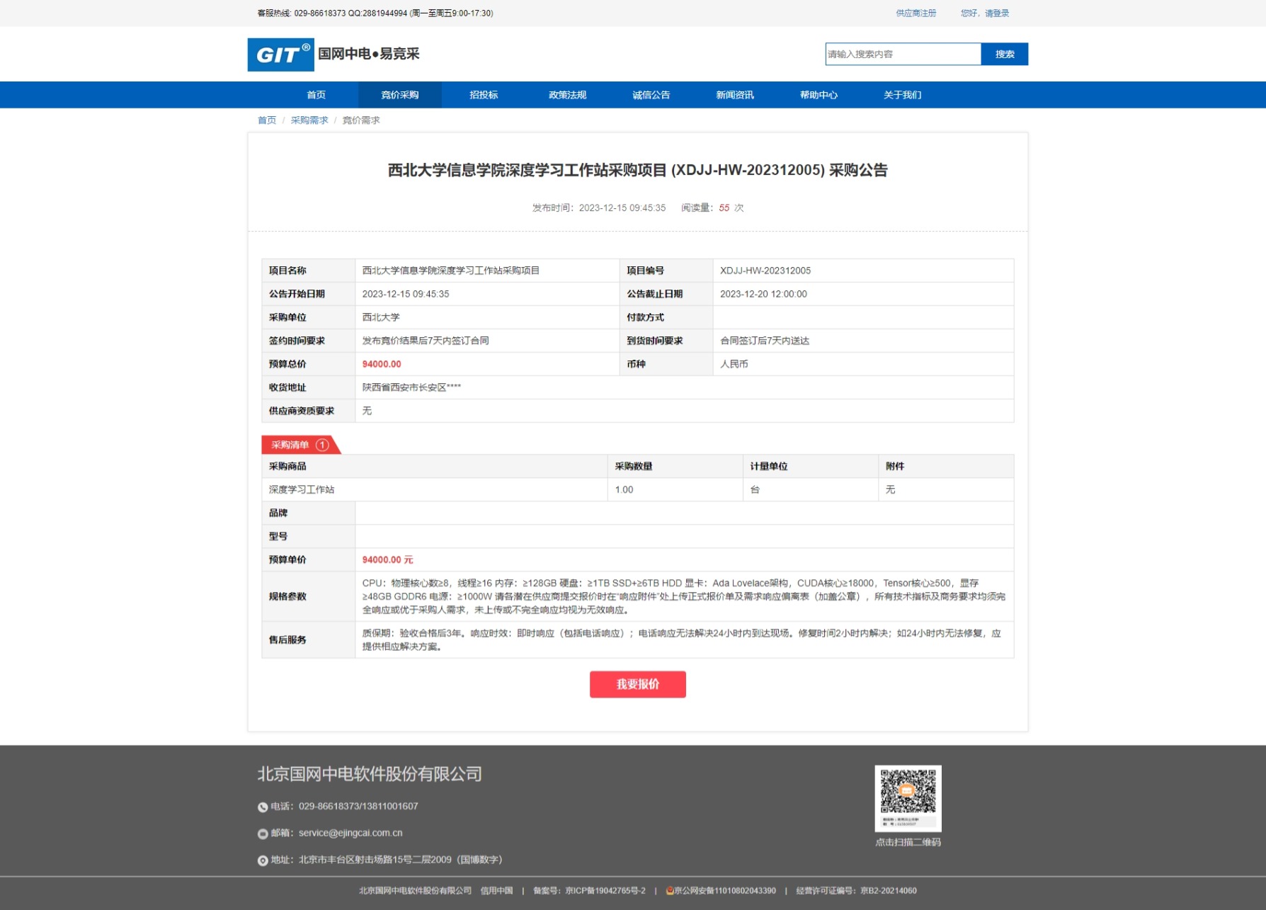 开云网页版登录入口信息学院深度学习工作站采购项目 (XDJJ-HW-202312005) 采购公告 作者: 编辑:王雯岚 时间:2023-12-19 原公告链接:https://www.ejingcai.com.cn/site/bidding/detail/7837