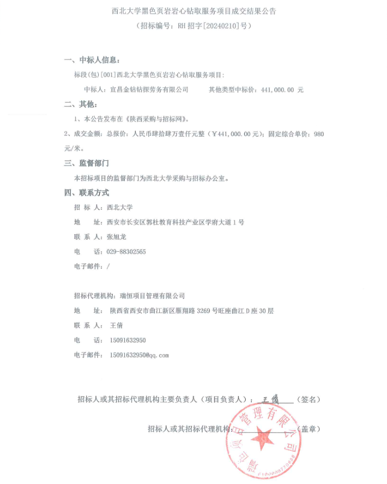 开云网页版登录入口黑色页岩岩心钻取服务项目成交结果公告